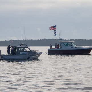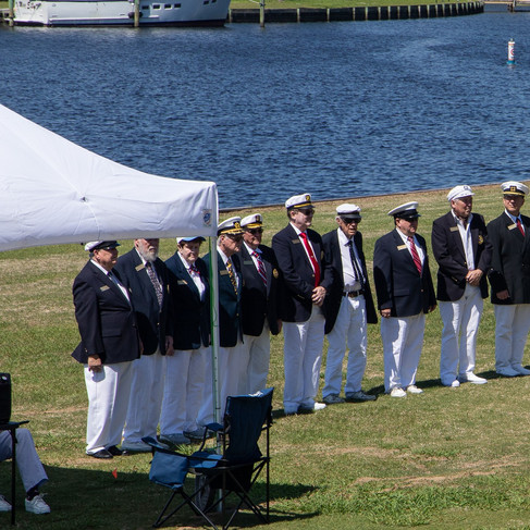 After Vice Commodore Myler read the names of FHYC members that passed before us, Norm Meisner laid the wreath to honor them. Vice Commodore Myler then handed the ceremony back to Commodore Phipps. Rear Commodore Steve Hustad announced that all members were present and accounted for. Commodore Phipps then asked the Cannoneer to fire the cannon again, marking the boating season's official opening.