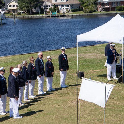 The next event was Commissioning Day, at which the FHYC Board of Directors, officers, and Bridge met at the flagstaff at Pelican Park. Also present were Past commodores. Commodore Dave Phipps called the officers to fall in. He then asked the Cannoneer, Darlene DeFigueiredo, to fire the cannon. The Commissioning Day ceremony then began. Commander Phipps then introduced the Board and Officers. The flag detail, Vice Commodore, Rear Commodore, Secretary, and Treasurer march to the flagstaff to raise the flags. Once the flags were raised, Commodore Phipps asked the flag detail to fall back in line. The Past Commodores were recognized for their contribution and dedication in previous years. Vice Commodore Craig Myler then took over the ceremony to honor those members who had passed since the last Commissioning Day. Each name is read with the sound of the bell.