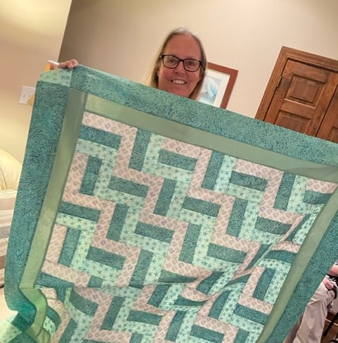 Many of the members love making quilts so they can give them as gifts. Ann Petrie says, “All quilts have a story. And who I make it for is part of the story. I made one for my sister and selected the colors based on her guest bedroom.” Margaret Puotinen says, “I’ve given away about 175 quilts in the last 16 years.” Jenny Nebe adds, “We call these charity quilts – it’s rewarding to give them as presents.” Their talent and generosity abounds!